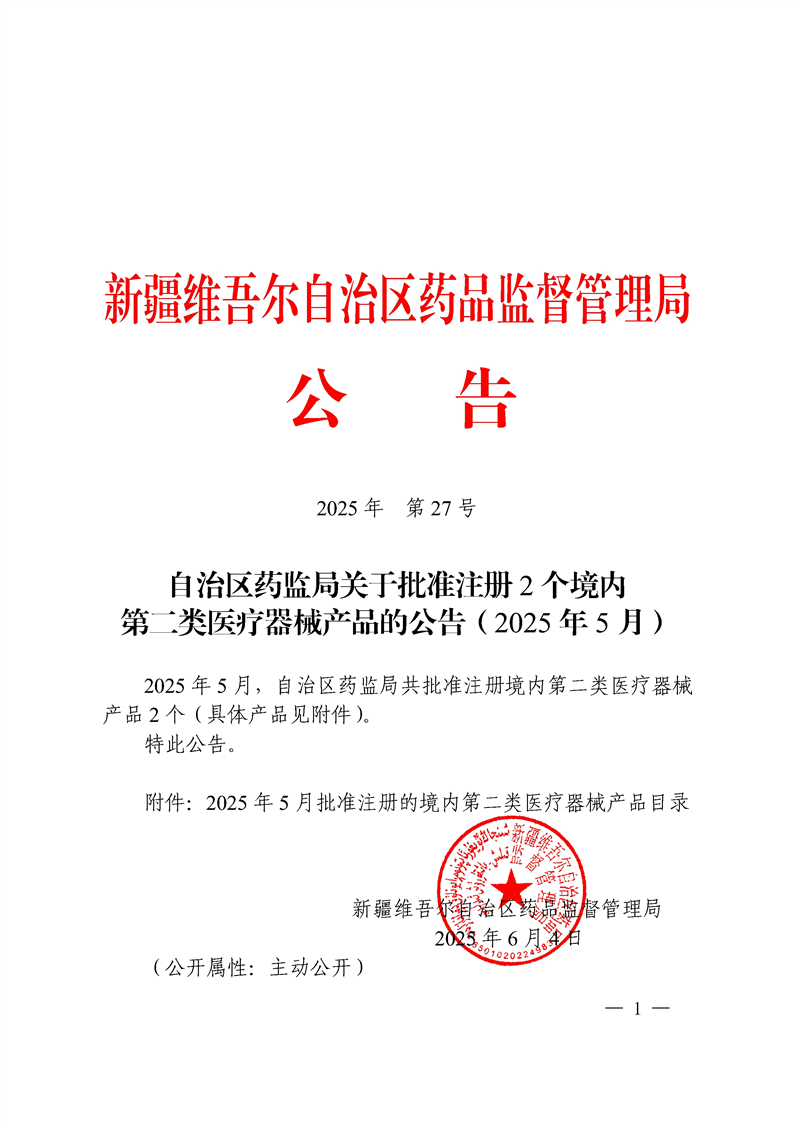 成人直播 关于批准注册2个境内第二类医疗器械产品的公告(2025年5月)