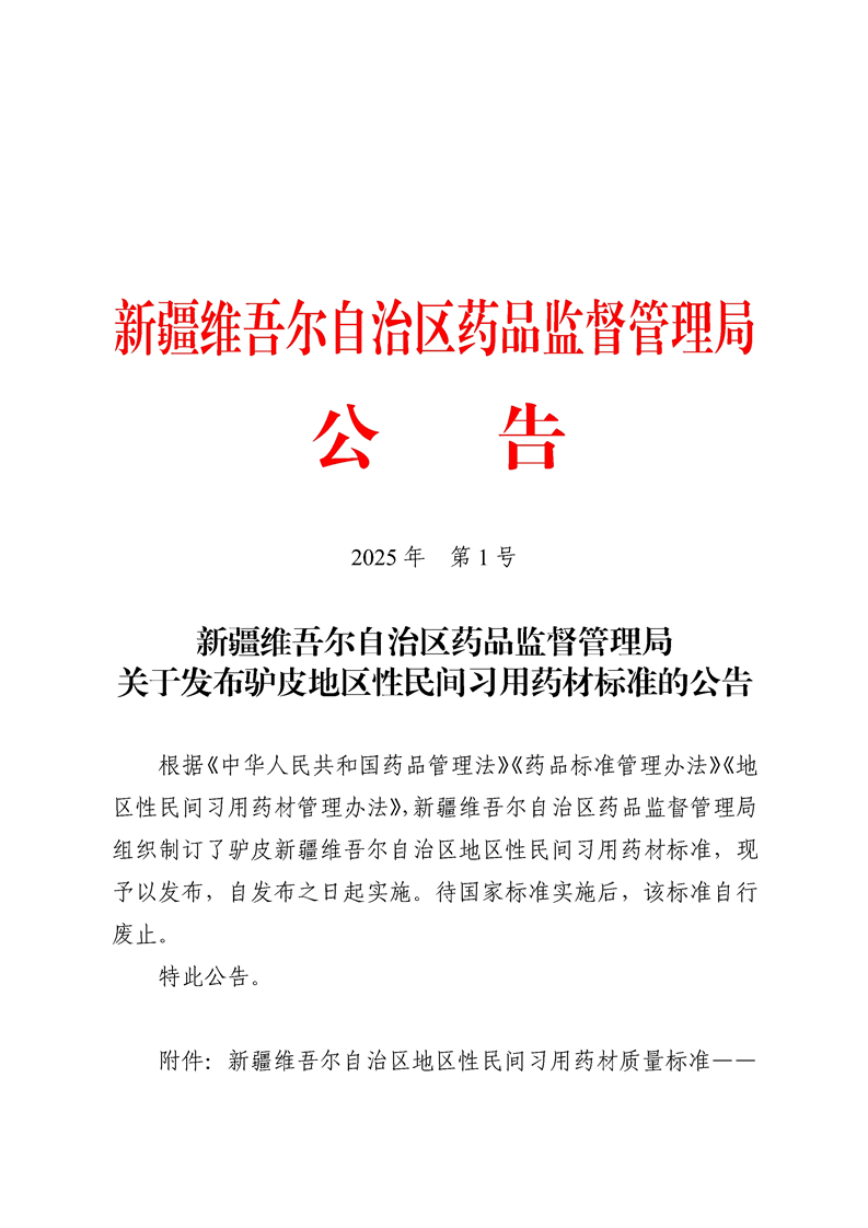 成人直播 关于发布驴皮地区性民间习用药材标准的公告