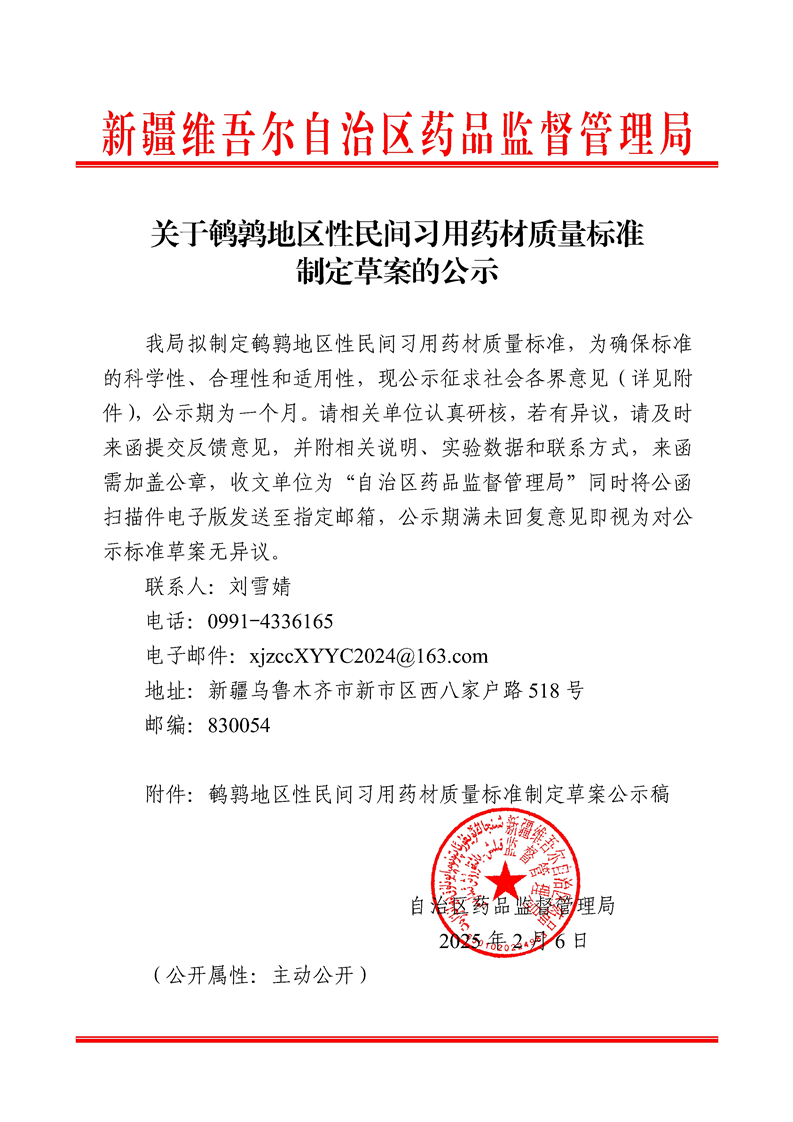 关于鹌鹑地区性民间习用药材质量标准制定草案的公示